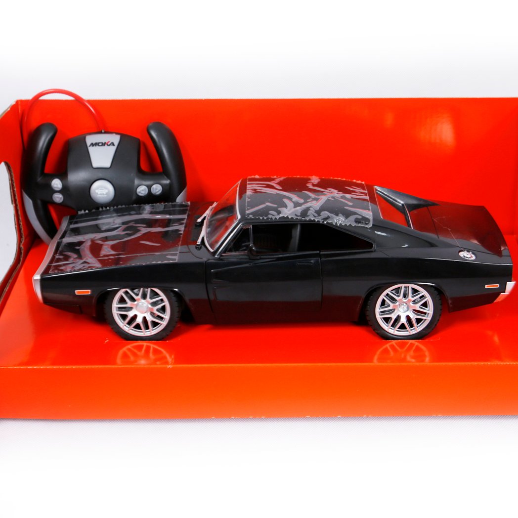 High‑speed RC muscle car in a glossy black finish, inspired by the iconic 1970 Dodge used in the Fast & Furious series