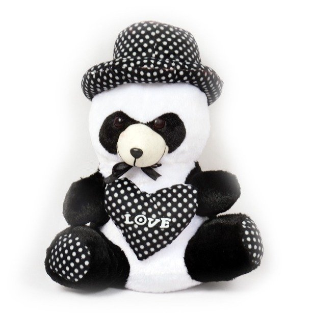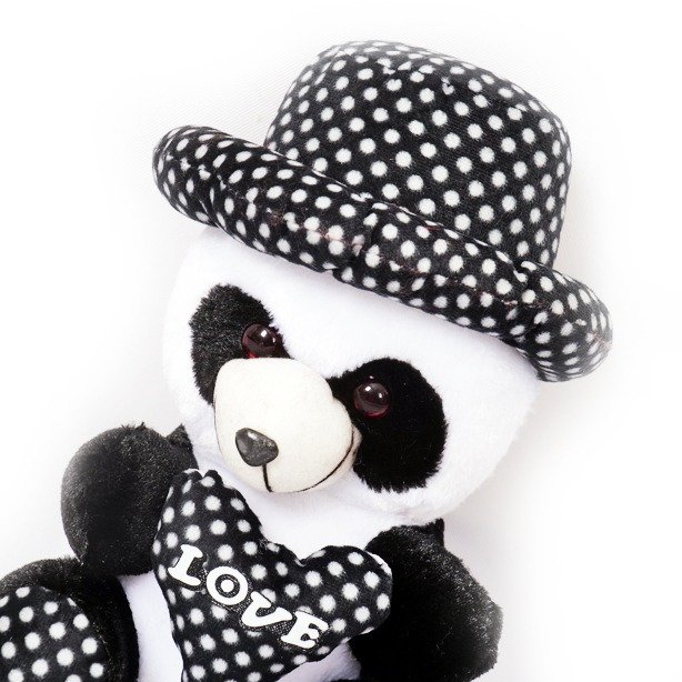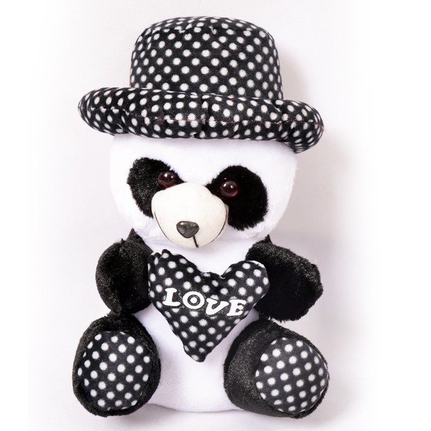 Black & White small Panda Cap Teddy Bear Soft Plush Fluffy Spongy Fur Stuffed Toy