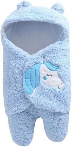 There is a hooded design added to the blanket that adds a cartoon theme to it. The hooded design can be worn around the baby’s head for a cosy tuck. There is a special swaddle design provided for the baby’s feet too.